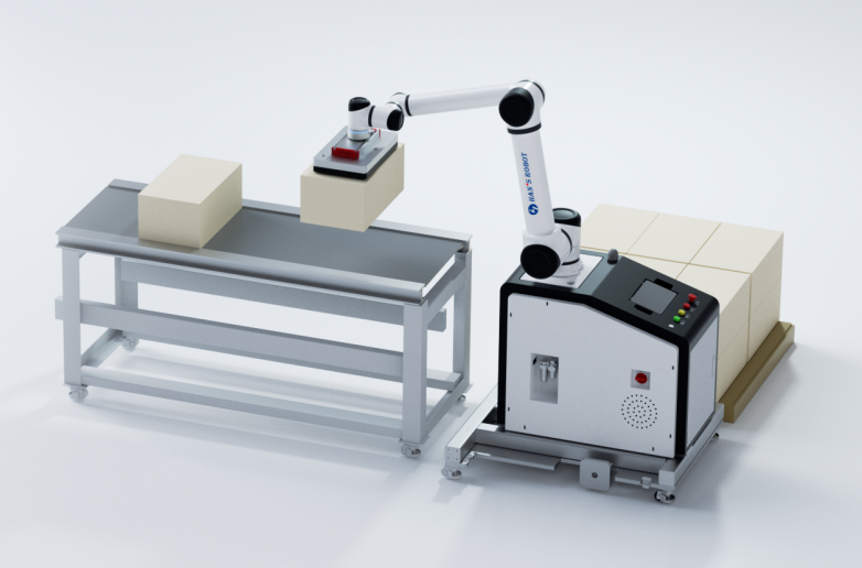 大族机器人携手合作伙伴,以S系列大负载协作机器人为核心打造的一站式码垛工作站,具有柔性化程度高、部署快、码垛速度快、效率合适、使用简单等优势,更适合各类大负载码垛应用场景。