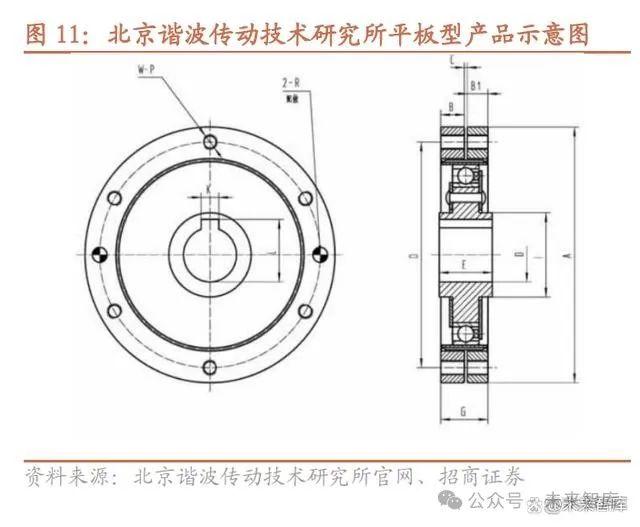 除杯型、帽型产品外,根据公开信息显示,行业中仅哈默纳科、北京谐波传动 技术研究所、中技克美推出了行业稀缺的平板型产品。传统杯型、帽型产品, 由于其柔轮由柔性齿轮部分+刚性底部构成,目前其整机设计已达到扁平的极限。 为进一步降低厚度,哈默纳科抛弃了传统柔轮结构,推出了平板型产品,其原 理是将传统柔轮的刚性底部切除,仅保留柔性齿轮部分,将原本用于输出的刚 性底部用与柔轮齿数相同的第二钢轮替代,因此大大缩短了柔轮长度而降低整 机厚度,目前其 14 型号厚度仅为 10.5mm。国内企业北京谐波传动技术研究所、 中技克美也拥有平板型产品。