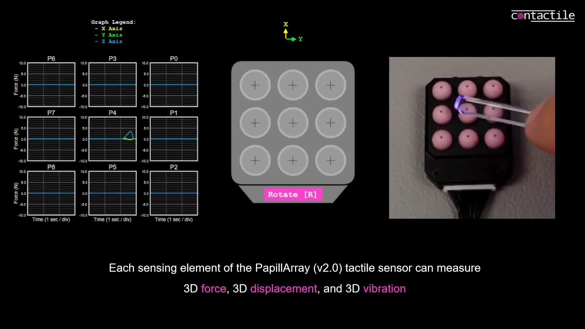 在光电式触觉传感器这里,有一家澳大利亚的创业公司(Contactile)已经做出很出色的样品,基于光电式的原理已经能够定性观测出3D的力与力矩,包括一些基础滑移和摩擦力的定性观测(相关DEMO如下),整体展示的效果还是挺impressive的,但可能在微型集成化上还有进一步的提升空间;