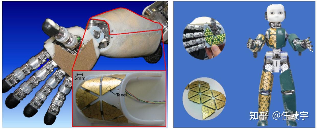 电容式触觉传感器在实际人形机器人或者灵巧手上的应用,目前看到越来越多的尝试,给大家展示两个非常有代表性的案例,即iit的iCub与Softbank的Nao: