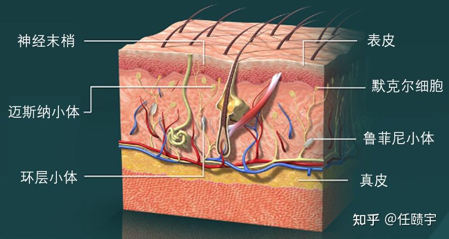 在谈柔性电子皮肤与触觉传感器技术之前,我们先来了解人类皮肤的触觉能力与相应机理,也能与后文的各类触觉传感器有上一个性能的比对,感叹造物主之神奇。