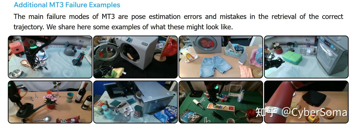 但凡是训练就不可能没有失败,团队po出了MT3失败模式的差异情况,问题主要是姿态估计误差和正确轨迹检索失误。