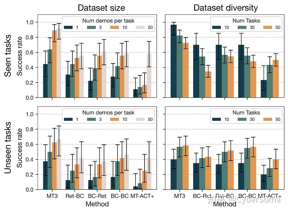 MT3属于是检索算法,在训练阶段不需要机器人数据,在自主检索,使其可以自选最优演示样本,相比以往的思路,效率高一些。