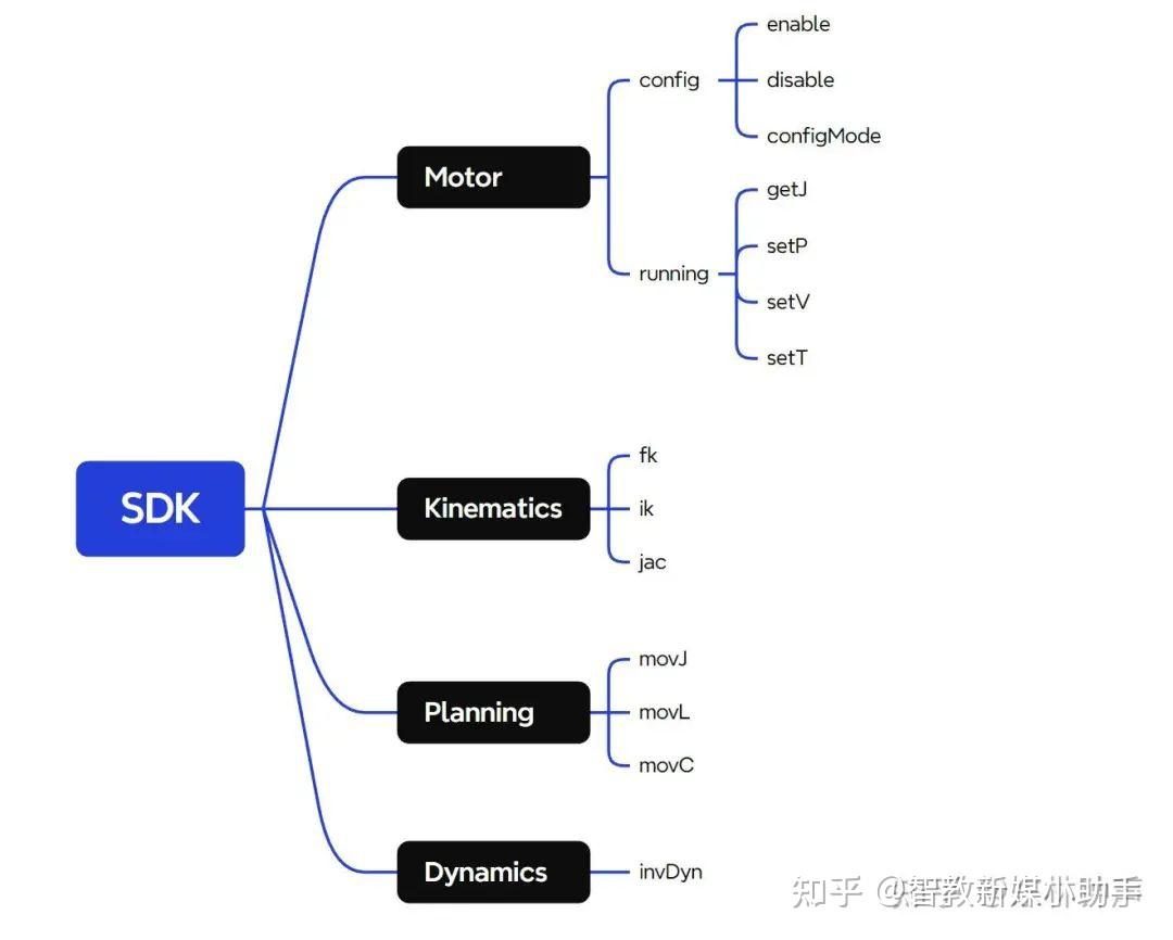 机械臂的SDK控制,在具身智能时代,应该做到简单、易用,且扩展性强。同时为了更好的连接AI,最好采用Python进行SDK的开发。而对于机械臂的控制来说,可以分为4大模块:Motor、Kinematics、Planning、Dynamics。