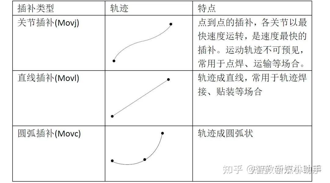 Planning部分则表示对机械臂末端工作空间的规划,movJ、movL、movC表示三种不同工作空间中点到点的插补模式: