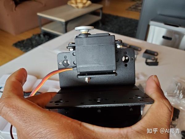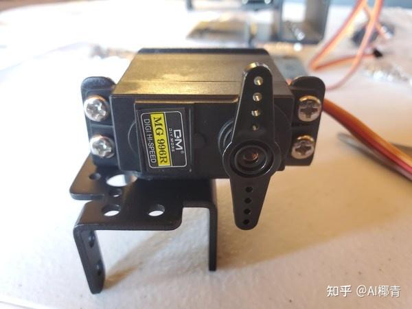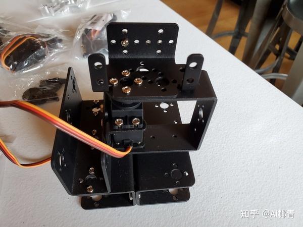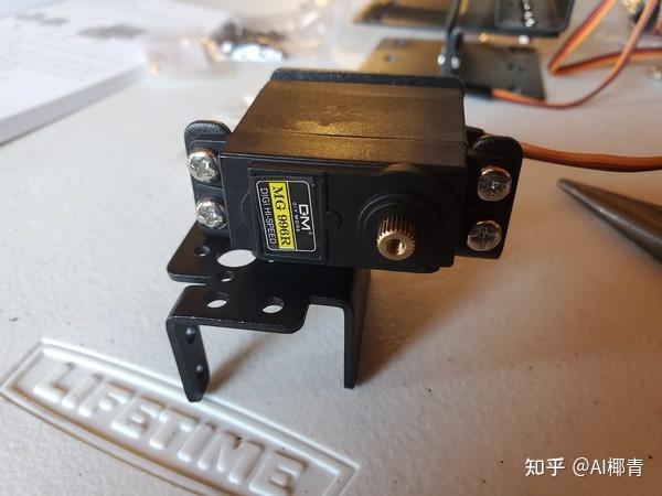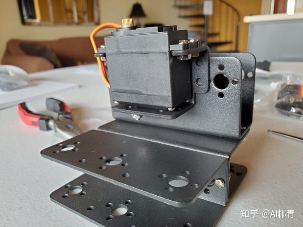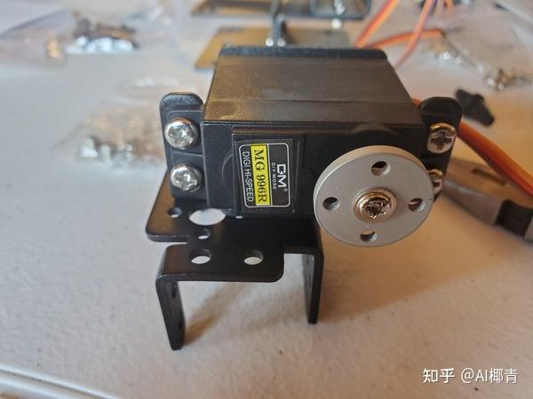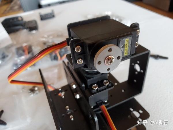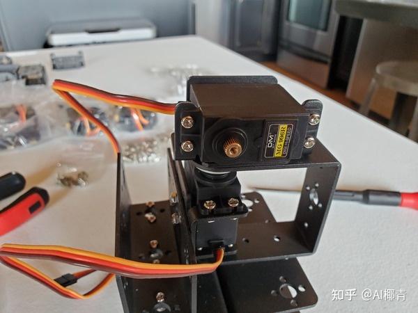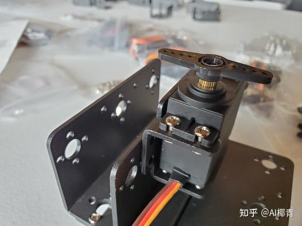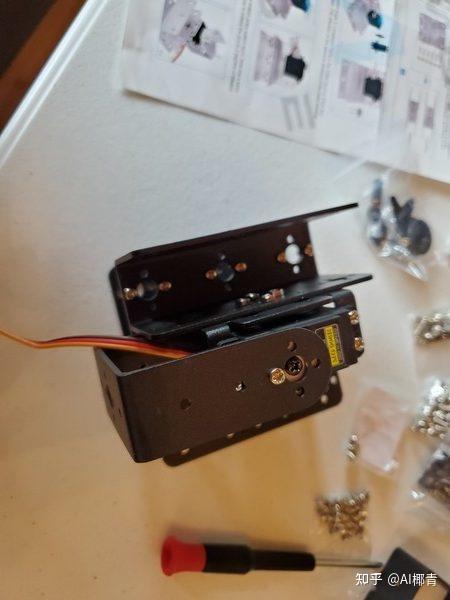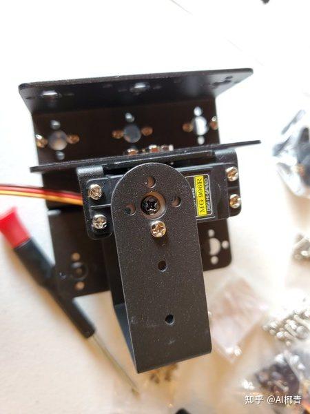 用四个螺丝和螺母将舵机电机固定在多功能支架中。