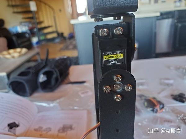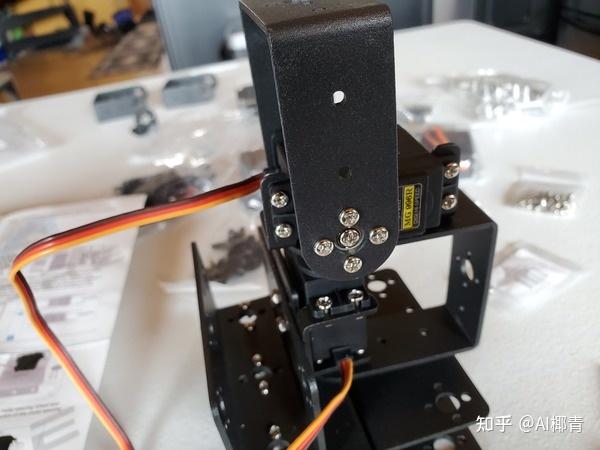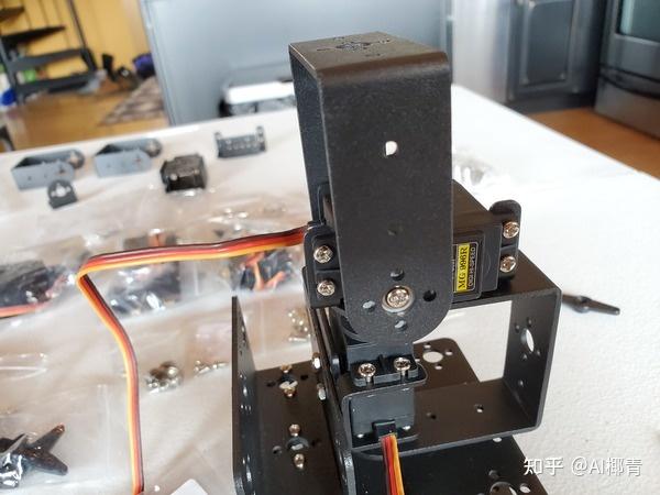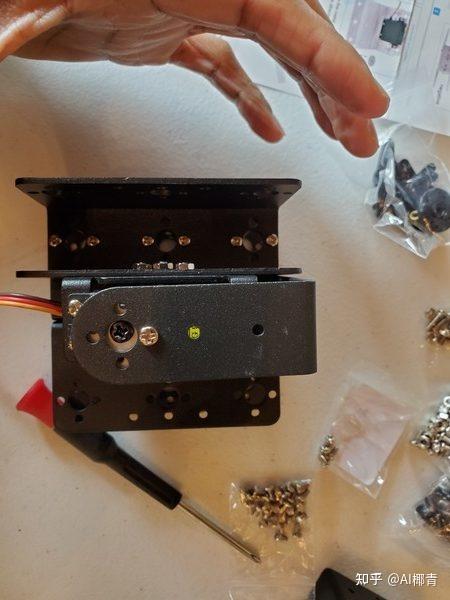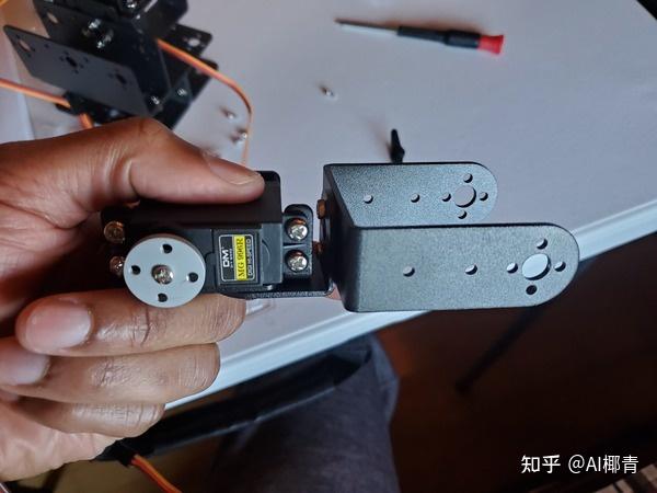 用两个黑色螺丝将爪子的松散部分固定在舵机角上。