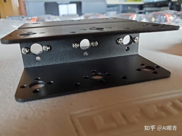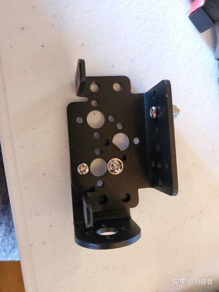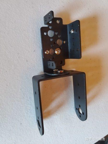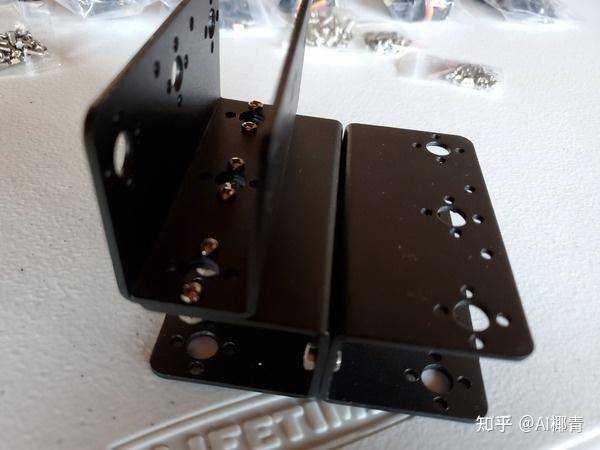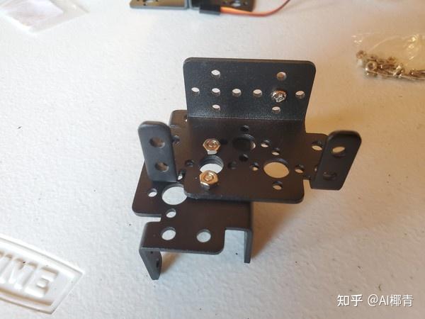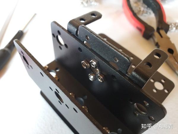 如下面的图片所示,用两个螺丝和螺母将 L 型舵机支架固定在多功能舵机支架上。