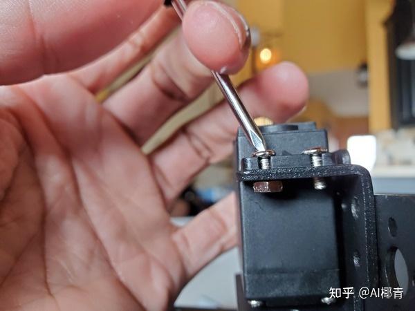 在舵机角的中间插入一个螺丝以将其拧紧。