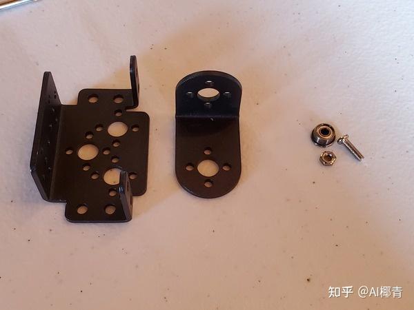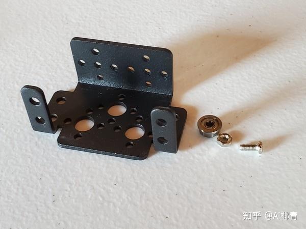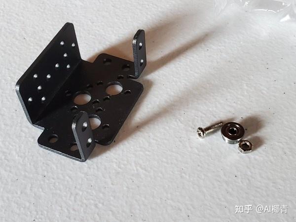 拿一个 L 型舵机支架、一个多功能舵机支架、一个轴承、一个 M3×10 螺丝和一个螺母。