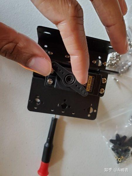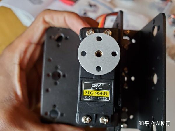 拿两个螺丝,将爪子固定在手部舵机角上。