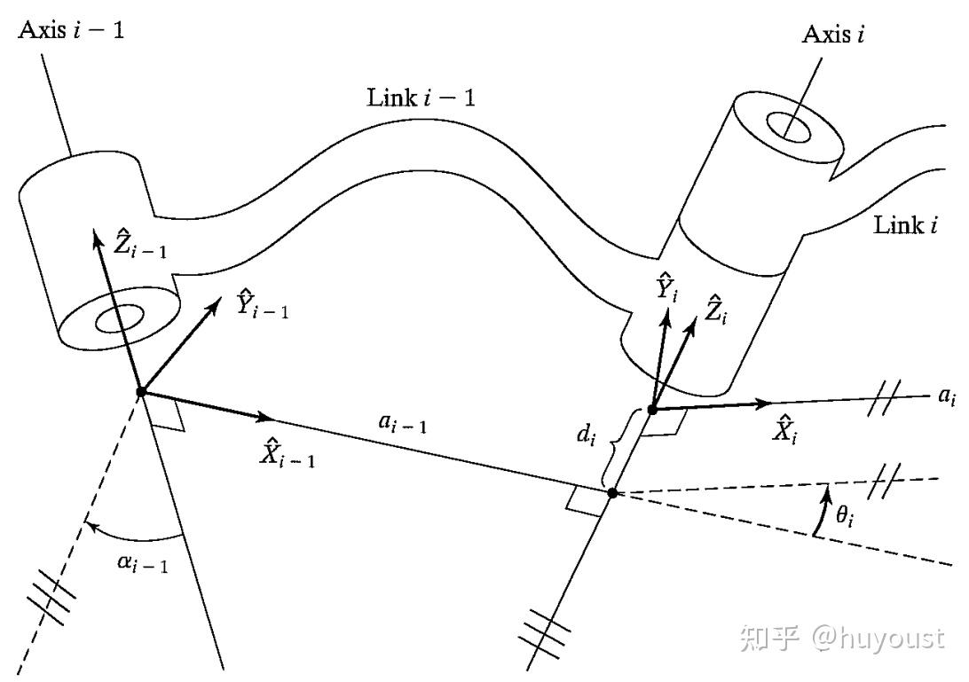 Jacques Denavit与Richard Hartenberg在1955年提出的DH参数法通常被认为是标准DH参数法(Standard-DH)