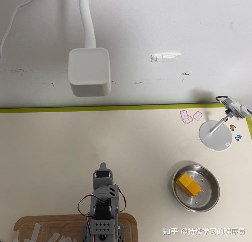 | 桌面高处,机械臂正上方 | 抓手上 | 抓手在稍微偏离目标物体时,导致相机看不见目标物体 |