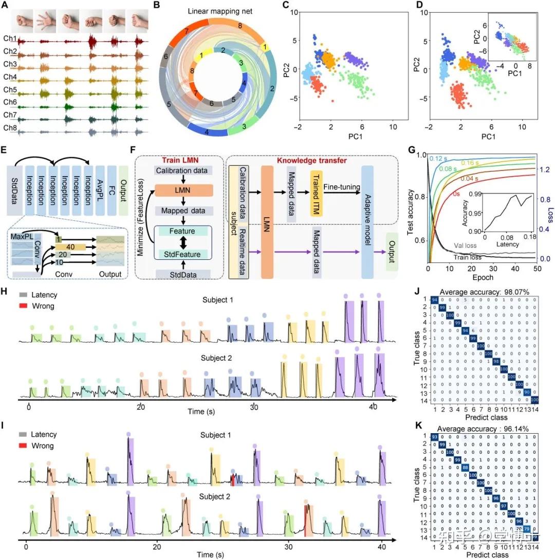 这种方法最引人注目的优势是它的学习能力。一个新使用者只需要执行三次重复的手势,系统就能通过迁移学习策略调整模型参数,实现个性化适配。这种“即学即用”的特性极大地提高了系统的实用性和用户体验。
