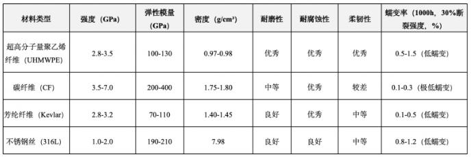 腱绳方案的长期可靠性曾是其主要短板,但新材料的出现彻底改变了这一局面。以超高分子量聚乙烯(UHMWPE)纤维(如Dyneema®或Spectra®)为代表的高性能纤维,为腱绳方案的工程化应用提供了坚实基础。
