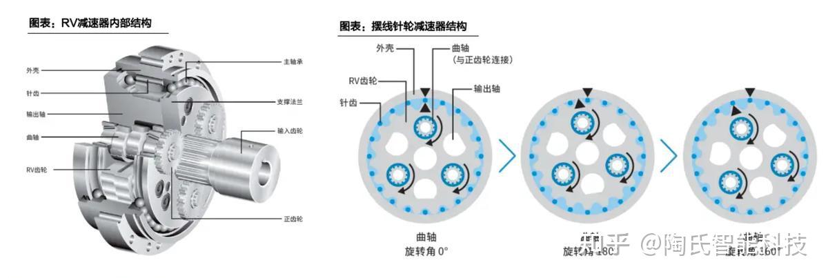 RV减速器通常由两级减速机构构成,其中第一级是正齿轮减速机构,第二级则为差动齿轮减速机构。