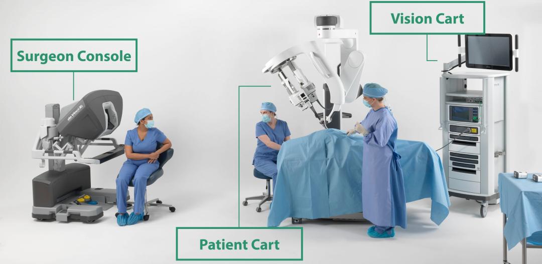手术中,机器人不但提供了3D高清视野,机械手臂操作还过滤了人手的震颤和抖动,达到完美的微创级别。