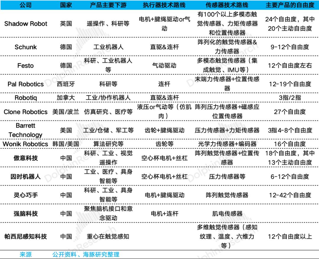 全球有多家公司选择专注于灵巧手的研发和生产,我们简单梳理这些公司,尽管它们基本都未上市,但以之为参考,可以观察灵巧手技术的演化和收敛方向。