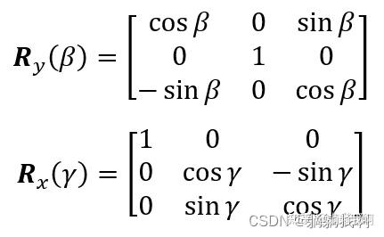 从而我们可以得出新坐标系O–x0′y0′z0′ 关于参考坐标系O–x0y0z0 的旋转矩阵为
