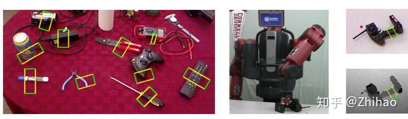 1.项目主要为了确定抓取位置,物体的哪个位置最容易抓取,最适合抓取,所产生的结果如下图所示,最好的抓取位置通过一个长方形框出。